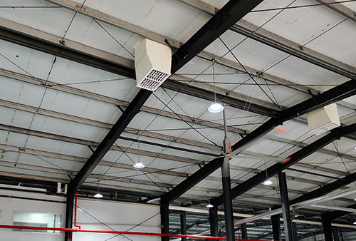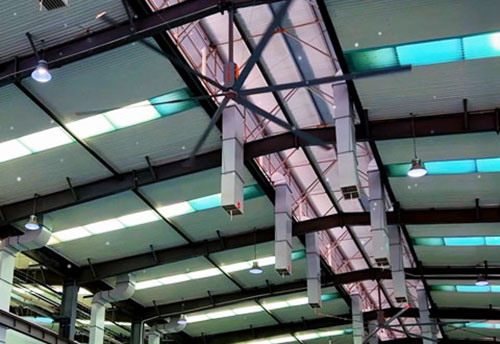 3.空間利用與美觀性,工業(yè)大風扇安裝于室內屋頂下的高空之上,不占用任何地面、墻體面積,非常節(jié)省空間,且美觀、大氣,扇機組合無需在建筑屋面或墻體上進行大規(guī)模的改造和開孔,不會破壞建筑的原有結構和外觀,有利于保持建筑的安全性和美觀性,特別適用于對建筑屋面承重安全性、空間美觀性有要求的大型室內生產工作場所。
