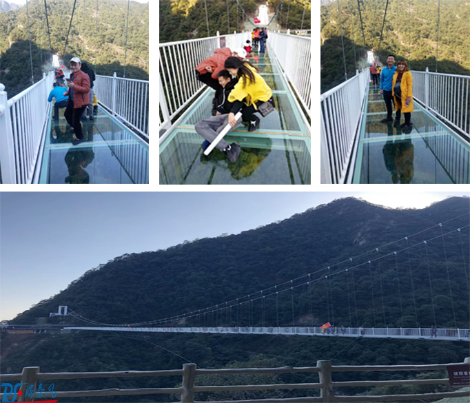 瑞泰風(fēng)員工代表正在爬祥云梯而我們歡欣雀躍要去的地方是云門(mén)山玻璃棧道,廣東省首座全透明高空玻璃橋,橋面全部采用透明玻璃鋪設(shè),橋體全長(zhǎng)316米 橋?qū)捊?米 橋體全長(zhǎng)316米,垂直高度達(dá)168米,足足62層樓高!
